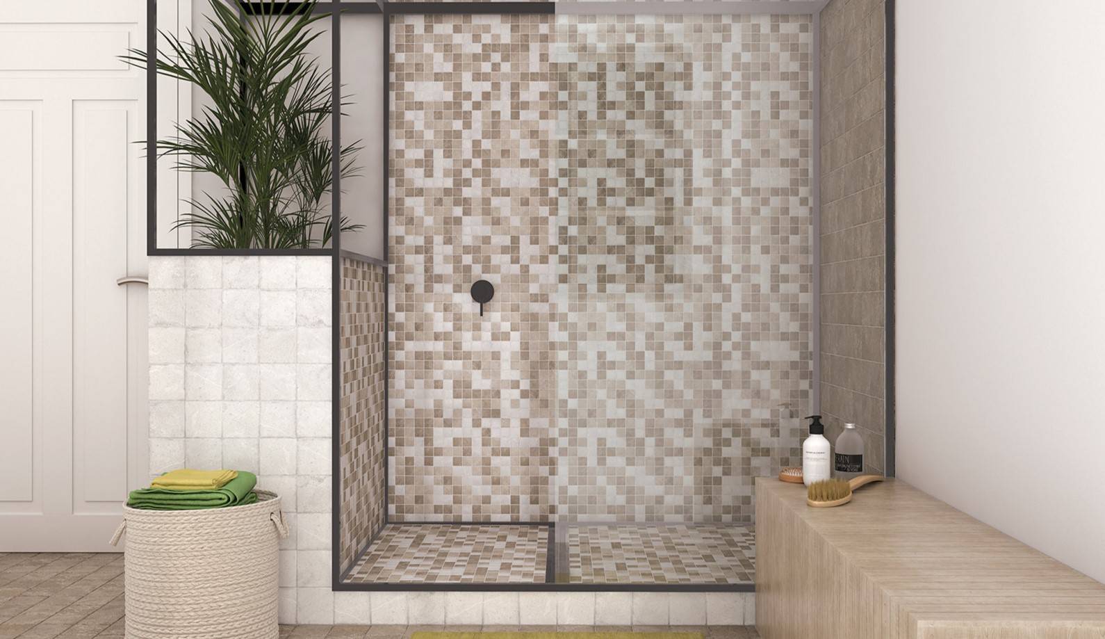 Керамическая плитка под мозаику для ванной стоит недорого, ей легко облицовывать стены, даже не имея должного опыта.