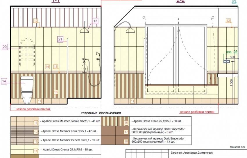 Зачем же необходимо рисовать настолько точную схему? Прежде всего она предназначается для помощи – она поможет в расчетах нужного количества материала, а также помогает определиться с размерами кафеля и вполне возможно определит, какой орнамент подойдет больше всего.