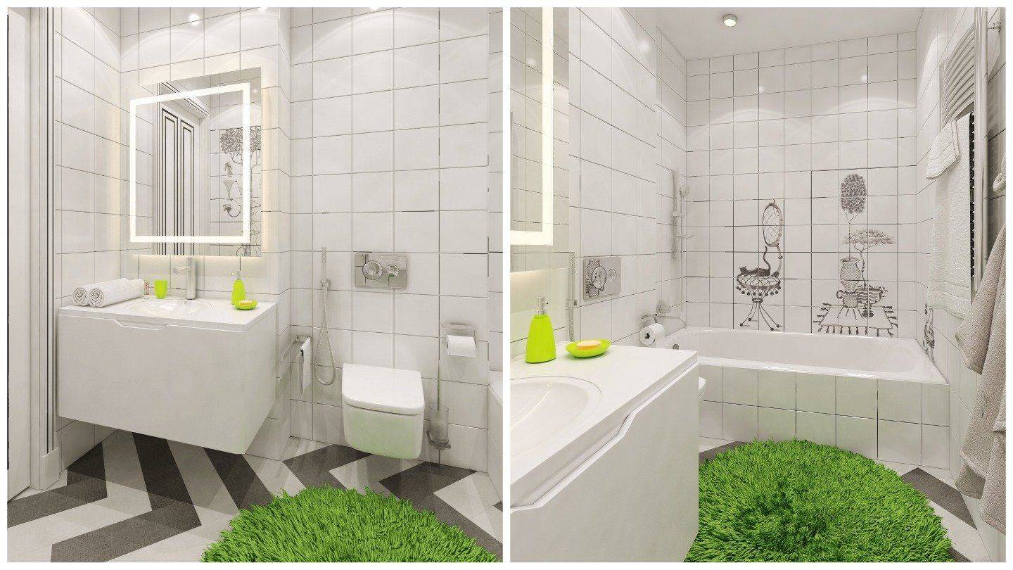 Модный и свежий дизайн большой ванной комнаты плиткой