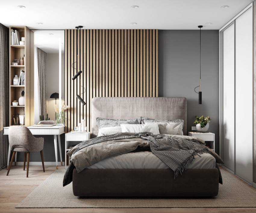Деревянные панели в спальни