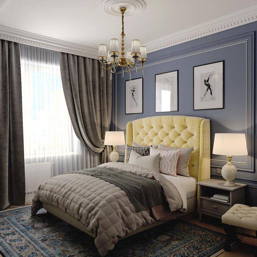 Дизайн спальни 9 кв.м. в классическом стиле