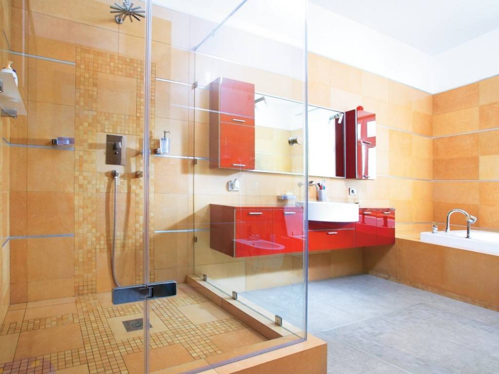 Если же душевая кабина не соответствует изначальному замыслу, облегчить интерьер можно отказавшись от привычных шторок для ванной в пользу стильного стеклянного экрана.