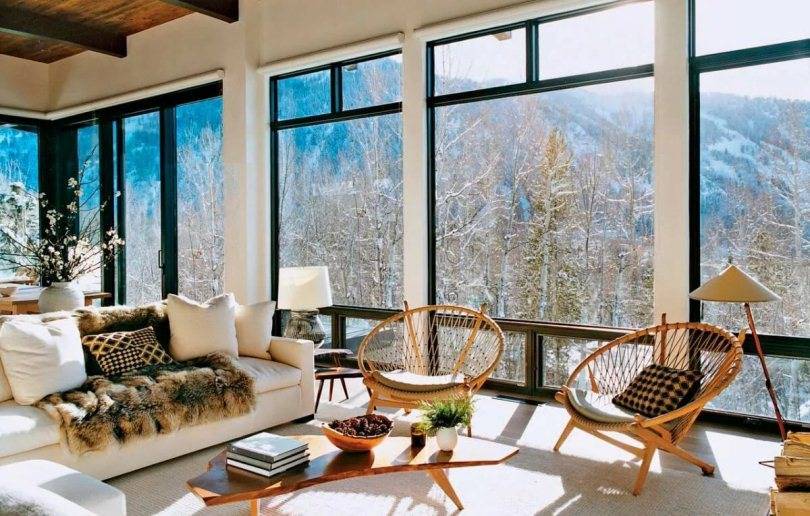 Также важно, чтобы дом располагался в живописных окрестностях. Лучшими местами для использования остекления панорамными полотнами являются:
