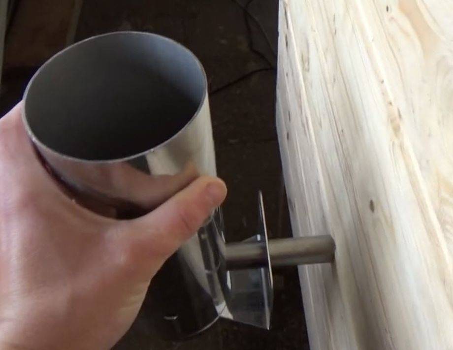 Сверху сверлим отверстие диаметром 50 мм под трубу для вытяжки.