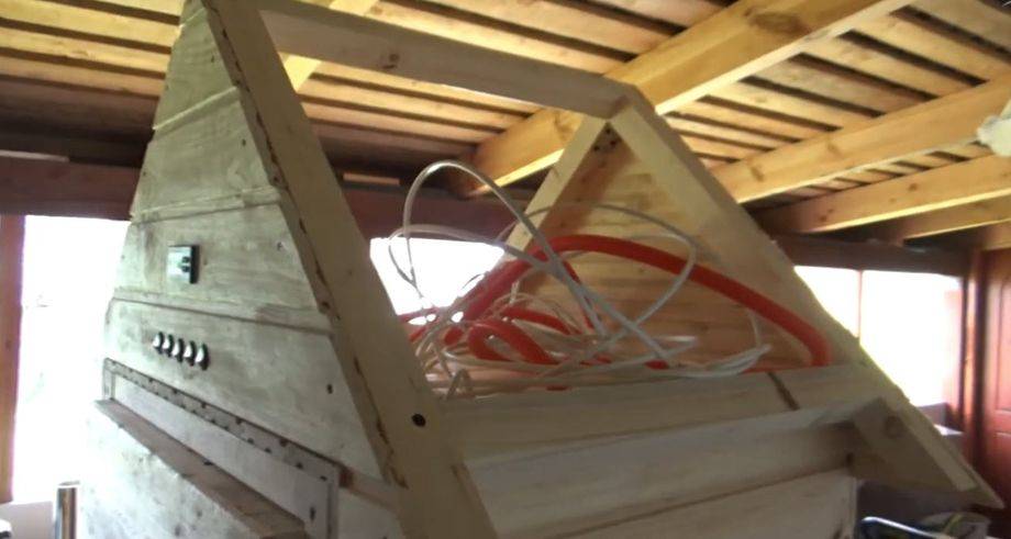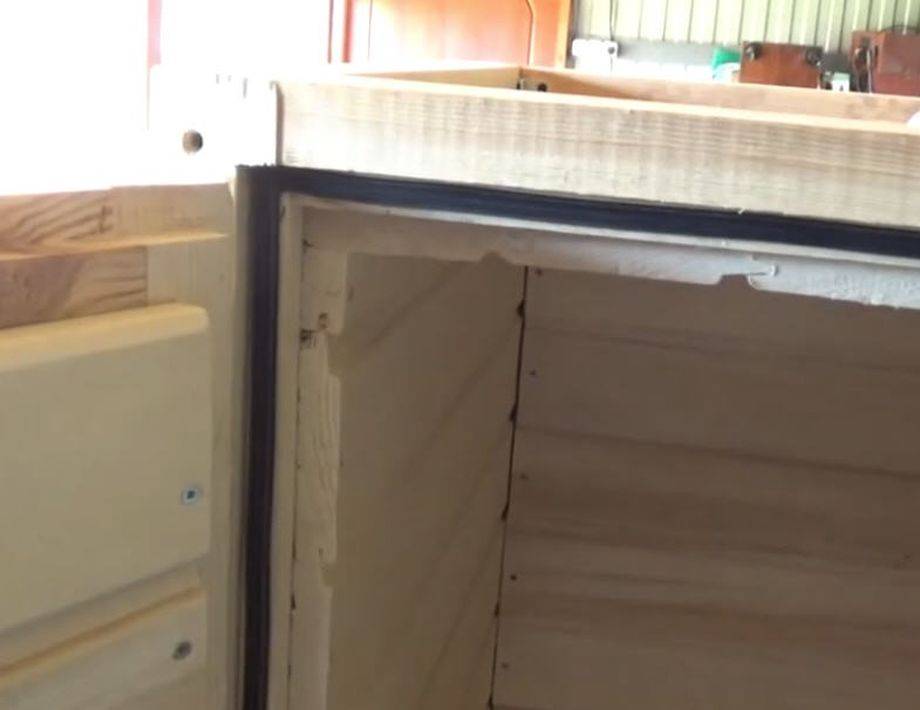 Спереди каркаса делаем паз, в который будет вставляться дверка (так же из сороковых брусков, собранных на уголки). Паз выбираем фрезерной машинкой.