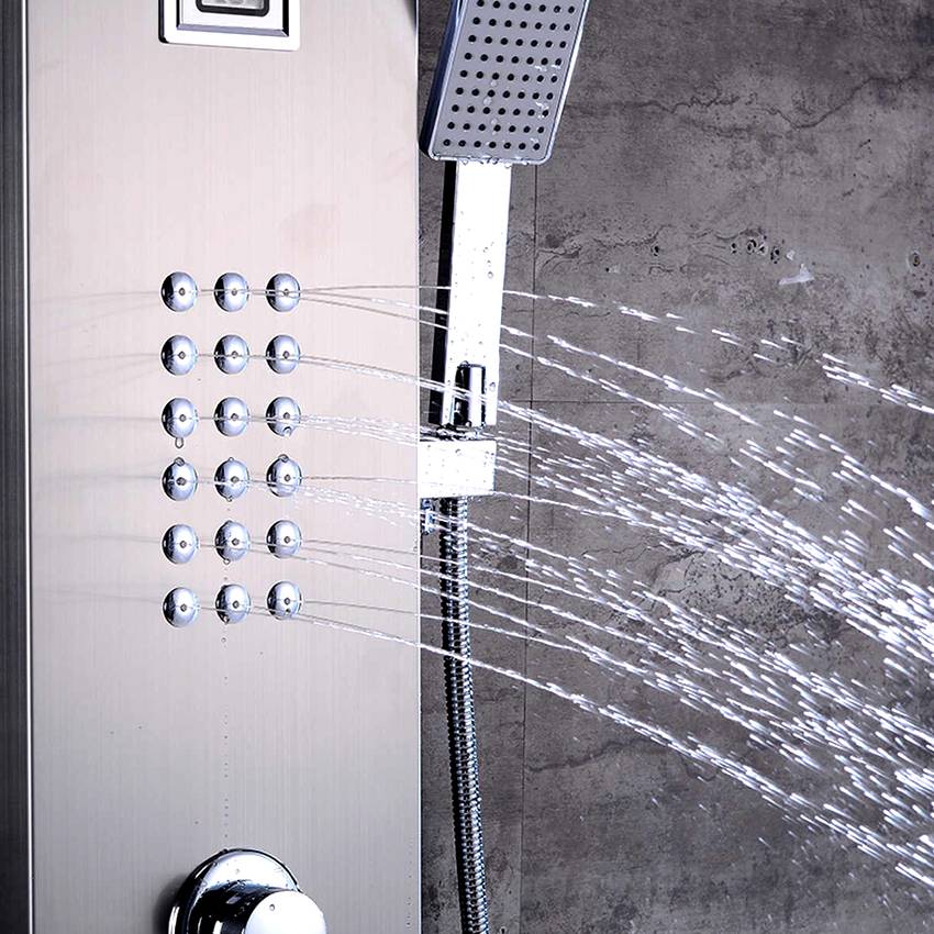 По этому поводу есть некоторый совет. При выборе панели лучше всего отдавать предпочтение конструкции, которая имеет 2 душевые насадки — каскадную и ручную.
