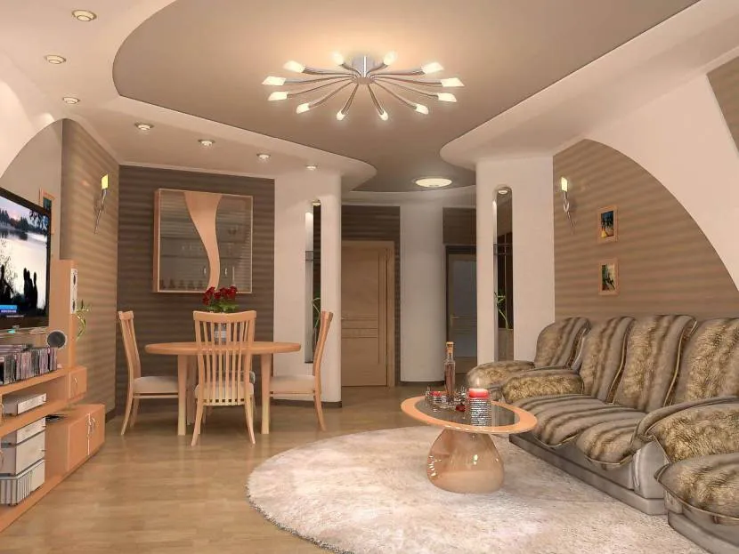 Какой потолок подойдет для кухни, гостиной или прихожей, зависит от габаритов помещения. Решающим фактором при выборе количества уровней станут его высота и площадь. Чем меньше помещение, тем аккуратнее надо моделировать ярусы.