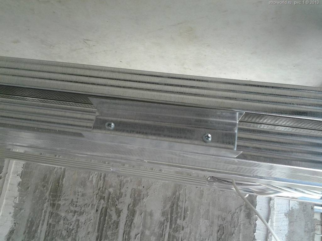 Отрезок профиля ПП60*27 обеспечивает горизонтальный размер короба, установленный в направляющий профиль и закрепленный саморезом.