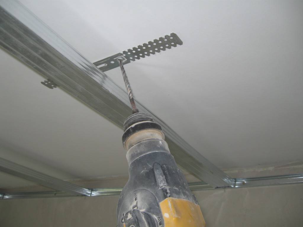 Проверьте, что у Вас имеется в арсенале, если чего-то нет, докупите. Понадобятся Вам: саморезы, подвесы, дюбеля-гвозди, профиля (минимум 4 мм).