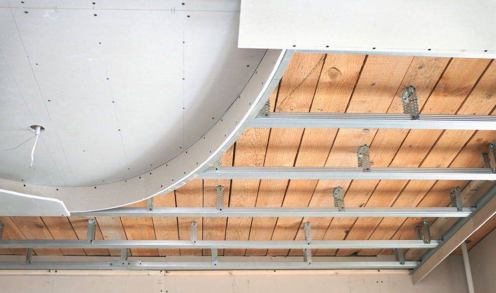 После того, как основа будет надежно зафиксирована, на нее крепятся листы гипсокартона. Стыки должны быть качественно заделаны, для чего удобно использовать специальную самоклеящуюся ленту. Дополнительно стоит запастись флизелином, которым оклеивают полностью весь потолок перед нанесением шпаклевки.