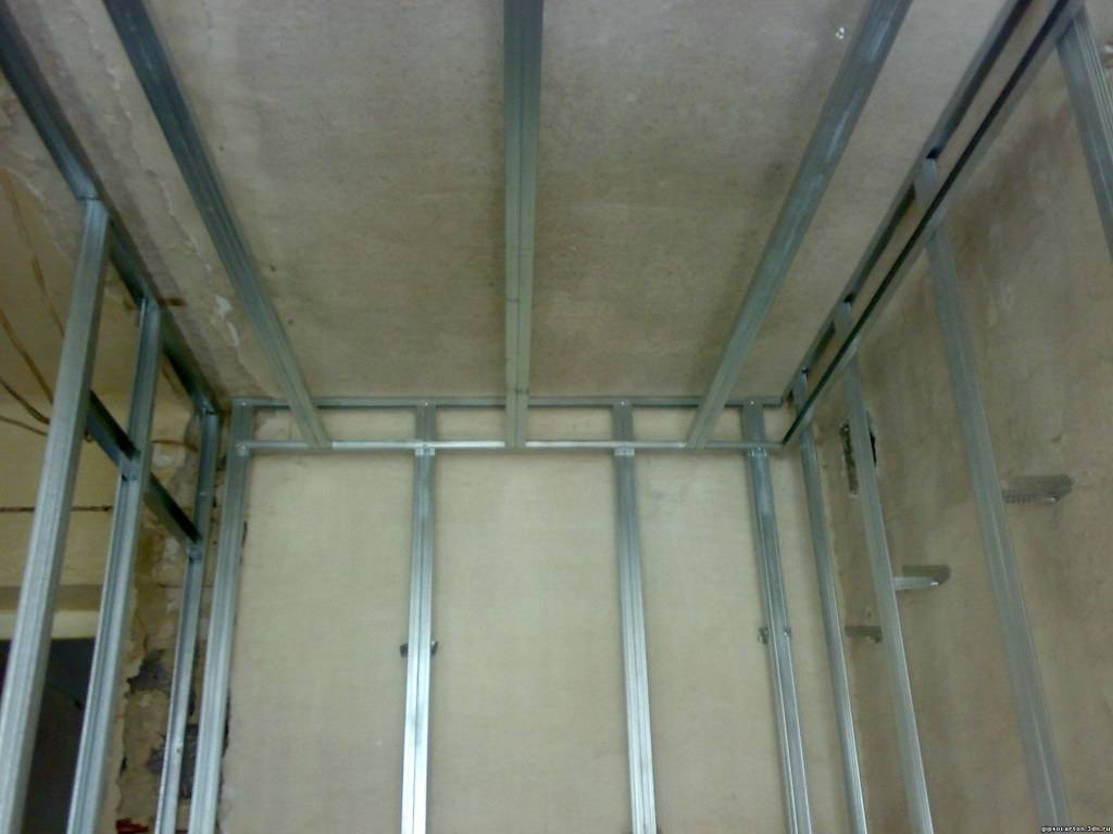 Совет. Если у вас идеально ровный потолок, то можно монтировать второй уровень каркаса прямо на него. Так вы сэкономите пространство.