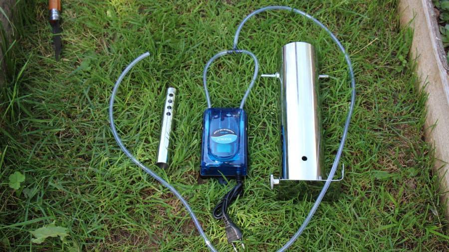 Как видно, элементов для сборки аппарата немного, и они доступны каждому. Единственно, придется приобрести маленький компрессор, к примеру, аквариумный, который продается в зоомагазинах.