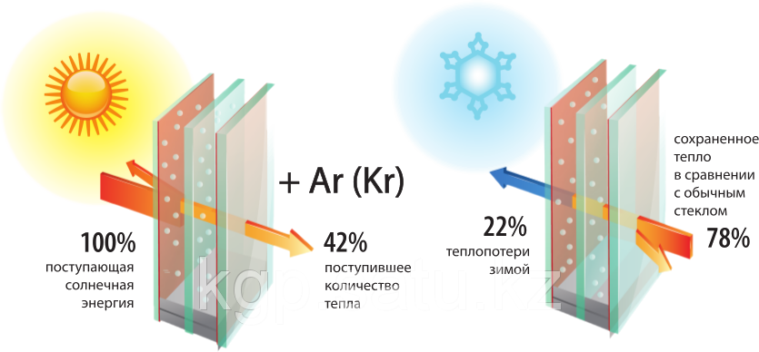 Рис. 3. Стеклопакет с аргоном защищает от жары и от холода.