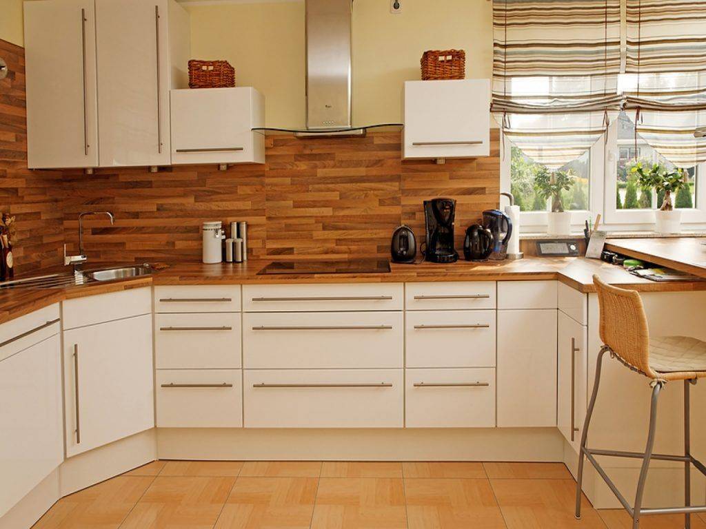 Несмотря на то, что деревянный фартук выглядит изысканно, он редко применяется на кухне из-за высокой стоимости.