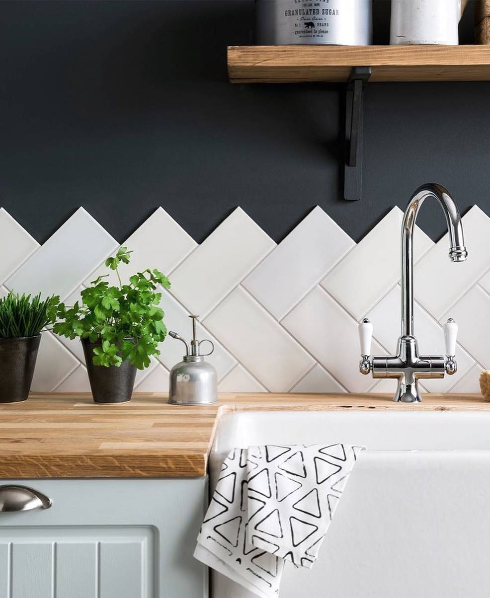 Ёлочка для кухни на фартук. Это удивляет не меньшим своеобразием чем два предыдущих. По своему напоминает паркет, но только не такой грубый и с обилием цветных кусочков. Цвета бывают разные, можно использовать контраст. Подходит для стиля прованс.