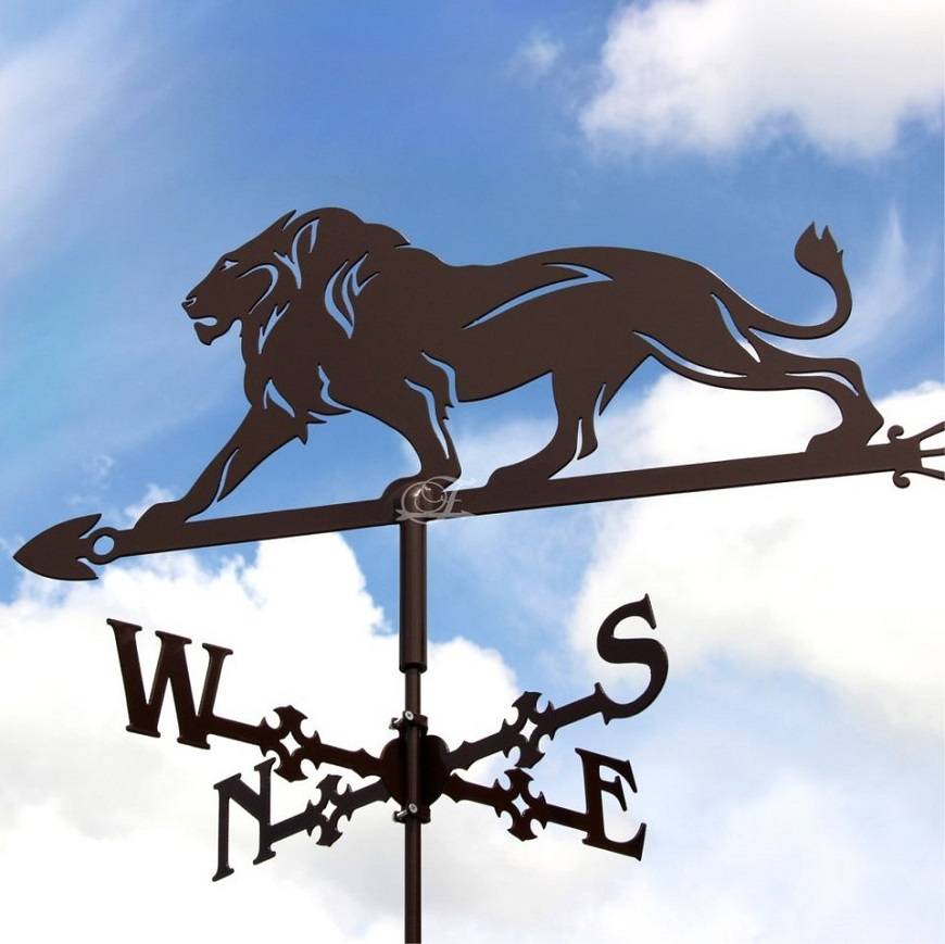Гордые звери символизирует смелость, великодушие и благородство. Фигурка льва на флюгере означает способность или желание властвовать окружающими. Конструкция с медведем оградит жильцов дома от потерь и неудач.