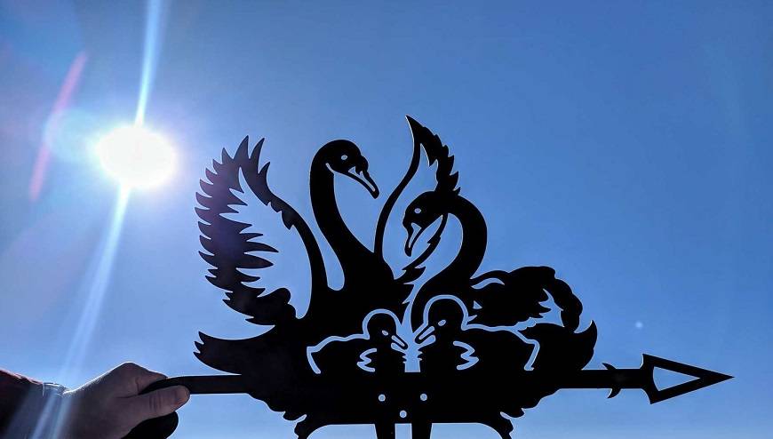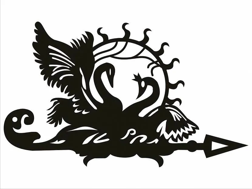 Флюгер состоял из пары пернатых, которые плыли или летели навстречу друг другу. Лебеди были приметой супружеской верности, мудрости и взаимной поддержки. Птиц считали символом естественной красоты, целомудрия и олицетворяли большую любовь.