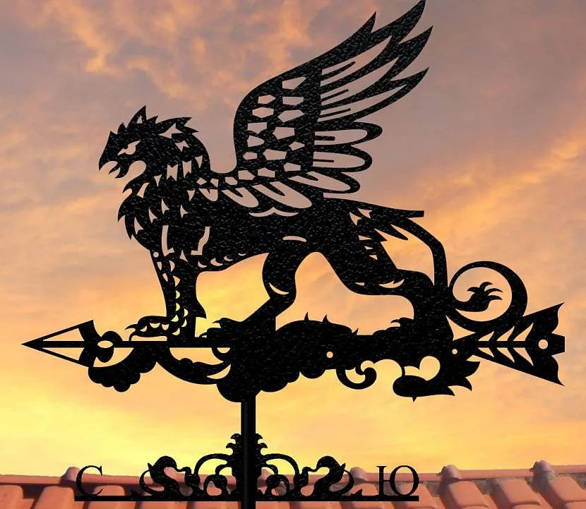 Мифическое животное сочетает в себе черты орла и льва. Крылатый зверь обозначает процветание, богатство и могущество. Конструкцию на крышу устанавливают люди, желающие подчеркнуть высокий статус и влиятельность, поэтому не стоит монтировать фигурку на крохотный дачный домик.
