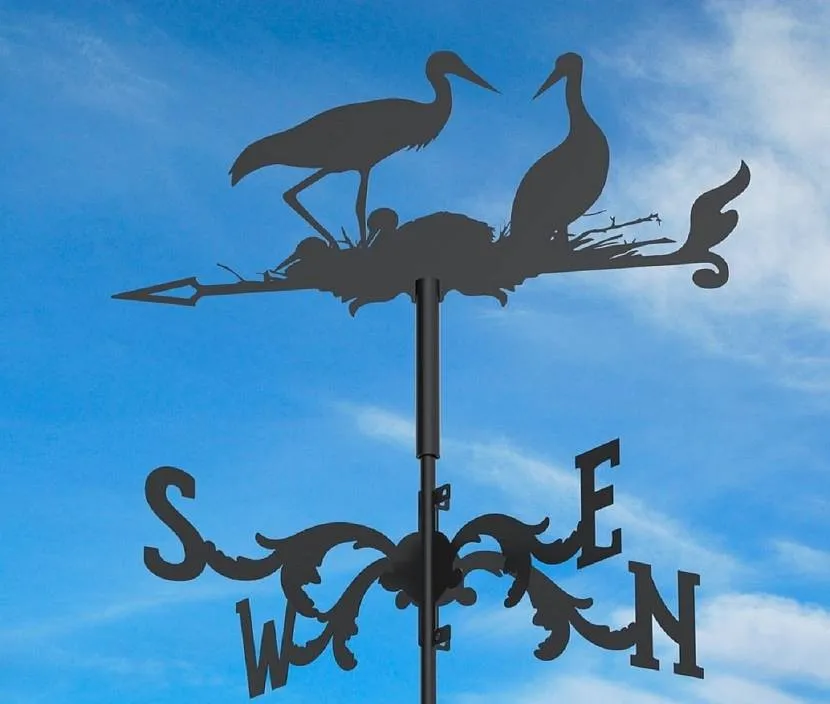 Такой силуэт был популярен в Скандинавии. Птицу считали символом благополучия, счастья и продолжения рода. Аист приносил жильцам любовь, удачу и процветание. Если семья хотела ребёнка, устройство устанавливали в виде двух птиц.