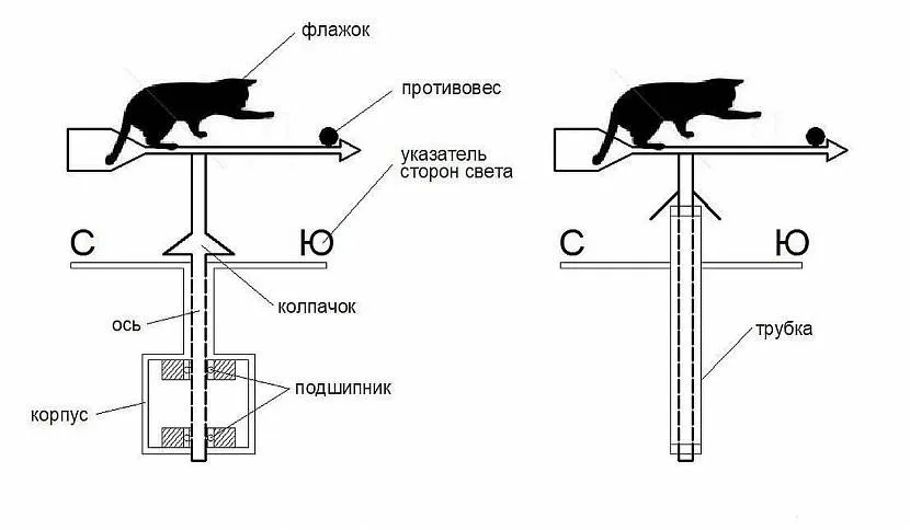 Стоит воспользоваться чертежом, приведенным ниже, который демонстративно показывает, процесс создания декоративного флюгера.