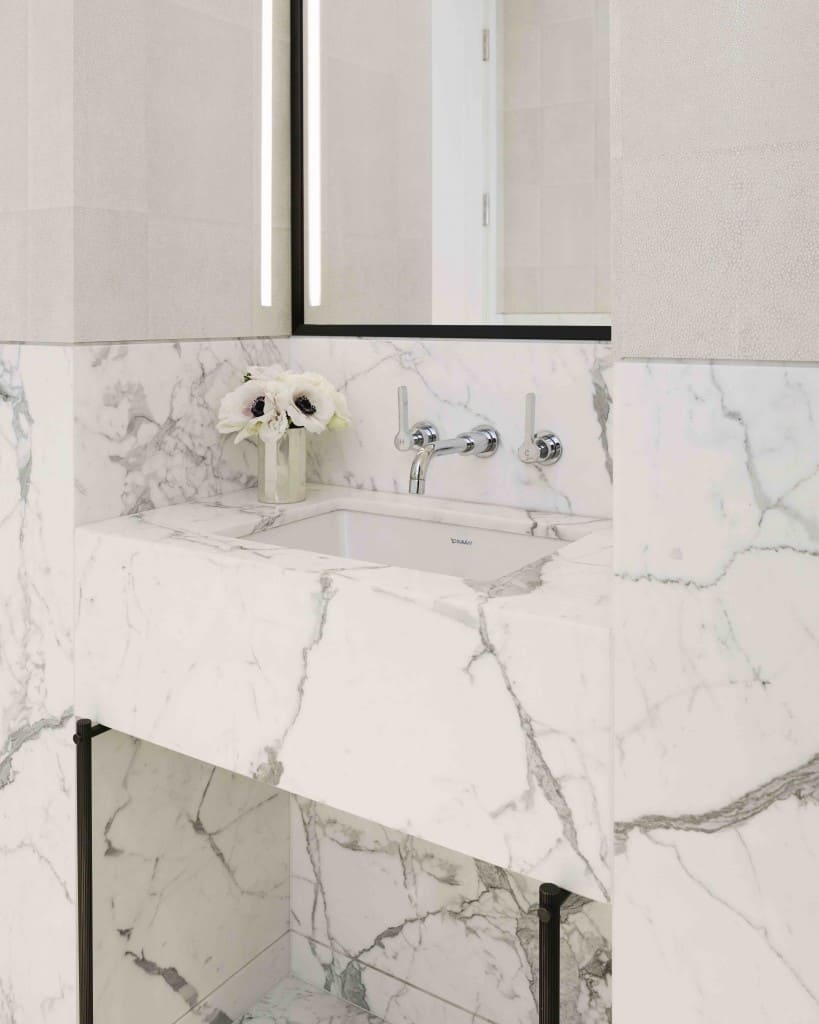 Модная тенденция в оформлении интерьеров ванной — отделка мрамором.