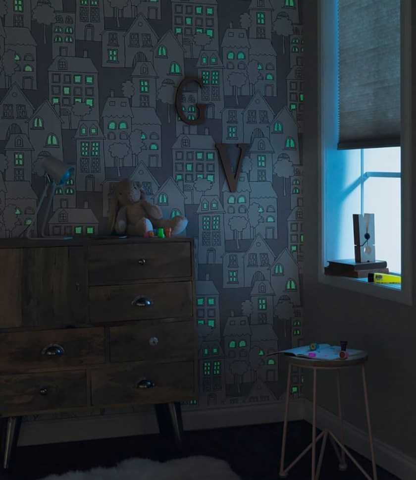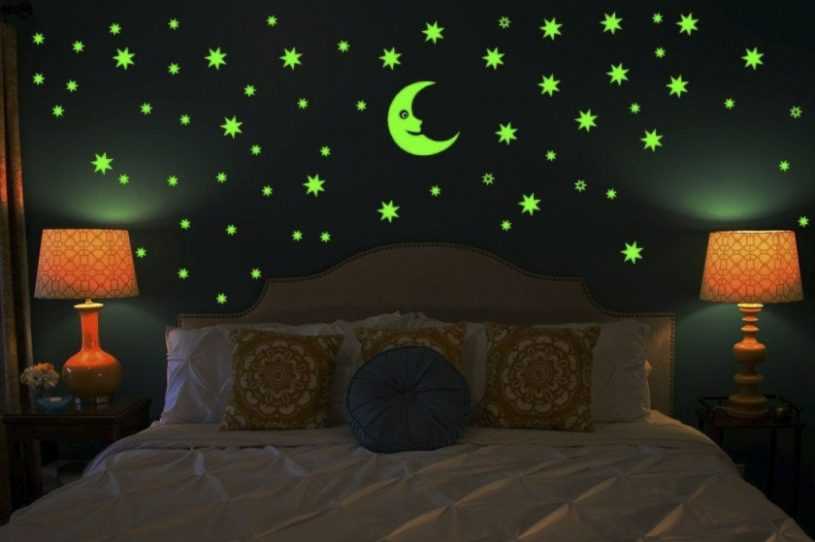 Днем обои смотрятся стандартно, а с наступлением темноты они преображаются. Потолок может превратиться в настоящее звездное небо