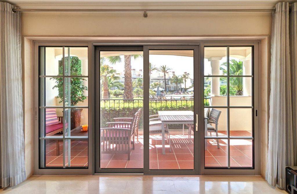 - портал – окно-дверь, которое состоит из одного или нескольких полотен, двигающихся вдоль неоткрываемых створок. Преимуществом такой конструкции является большая площадь остекления и ее надежность;