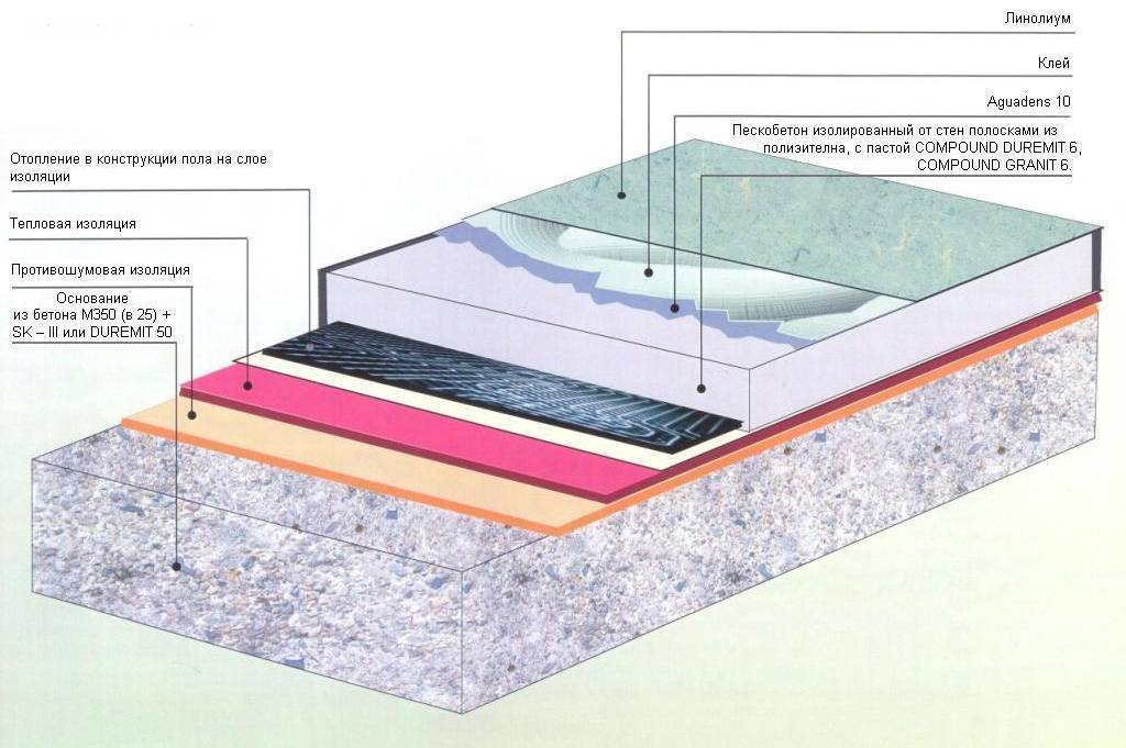 Схема гидроизоляции пола рулонным гидроизолятором: