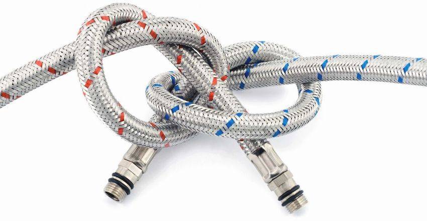 - Элементы с нержавеющей оплеткой по своей прочности соответствуют пластиковым трубам, но в отличие от них имеют способность изгибаться.