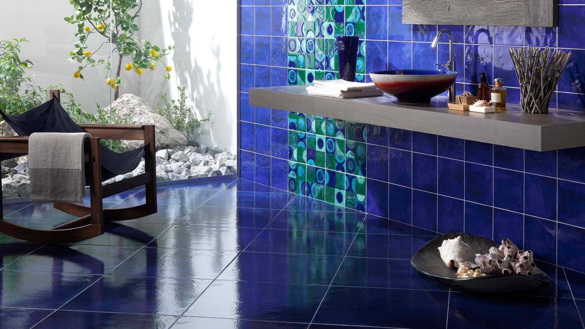 Плитка-эмаль препятствует проникновению влаги, поэтому изделия подходят для отделки стен ванных комнат, душевых, саун и бассейнов.