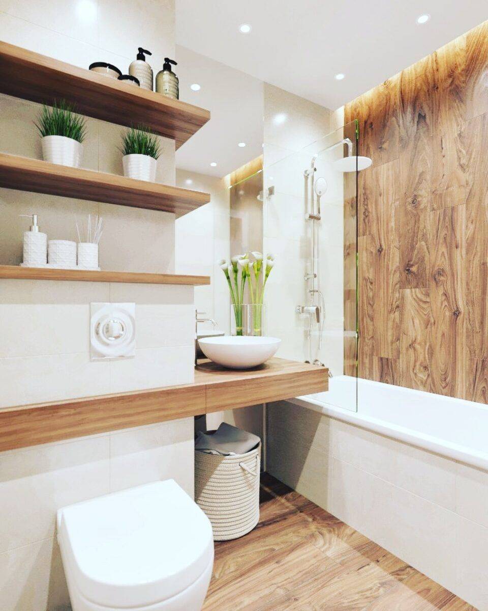 - Если вы хотите с большей пользой употребить пространство в комнате, откажитесь от громоздких навесных полок в пользу врезных ниш или же экранов с полочками под купелью;