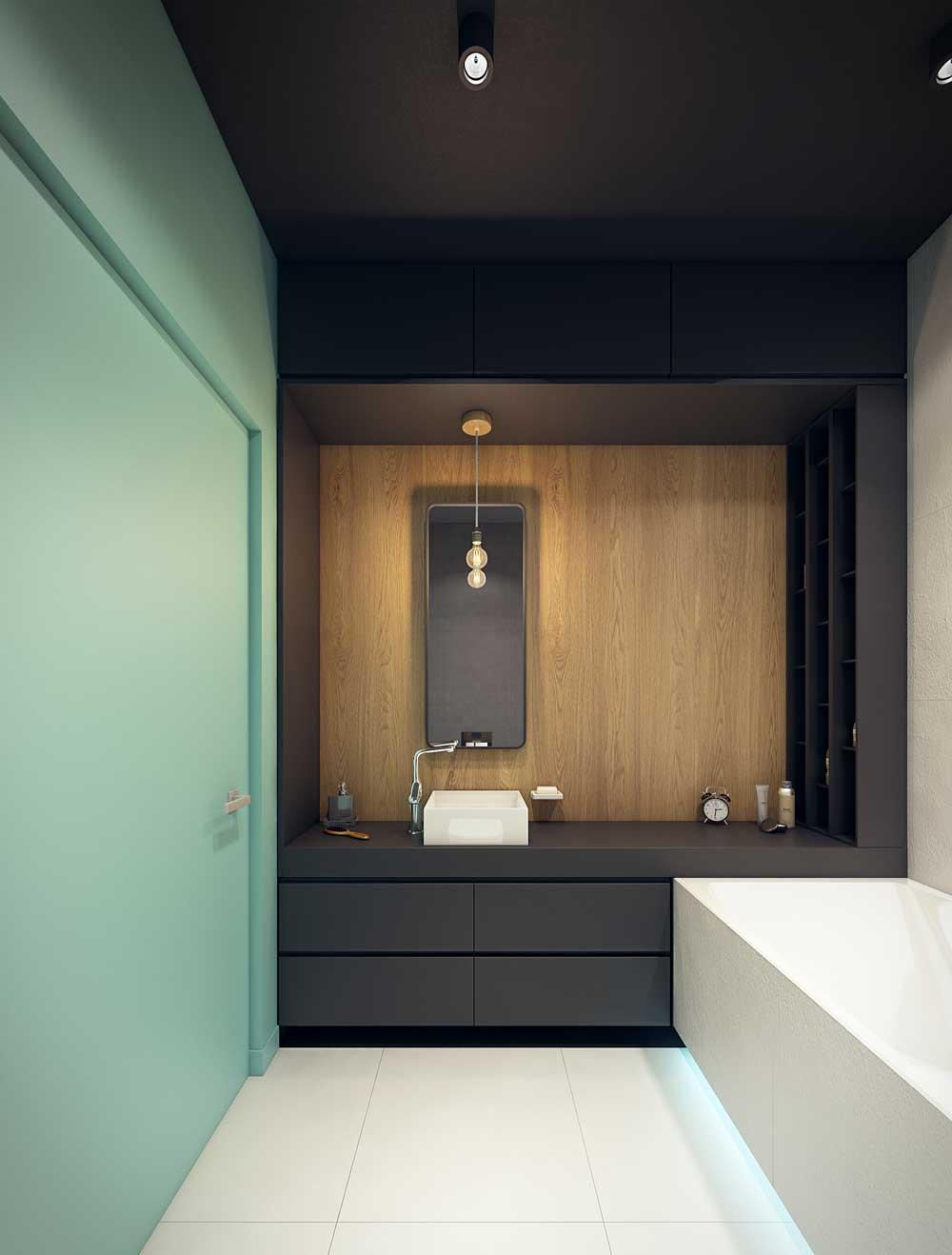 Главное, чтобы внимание акцентировалось на светлой отделке и аксессуарах. Также не забывайте использовать боковое и напольное освещение наряду с потолочным