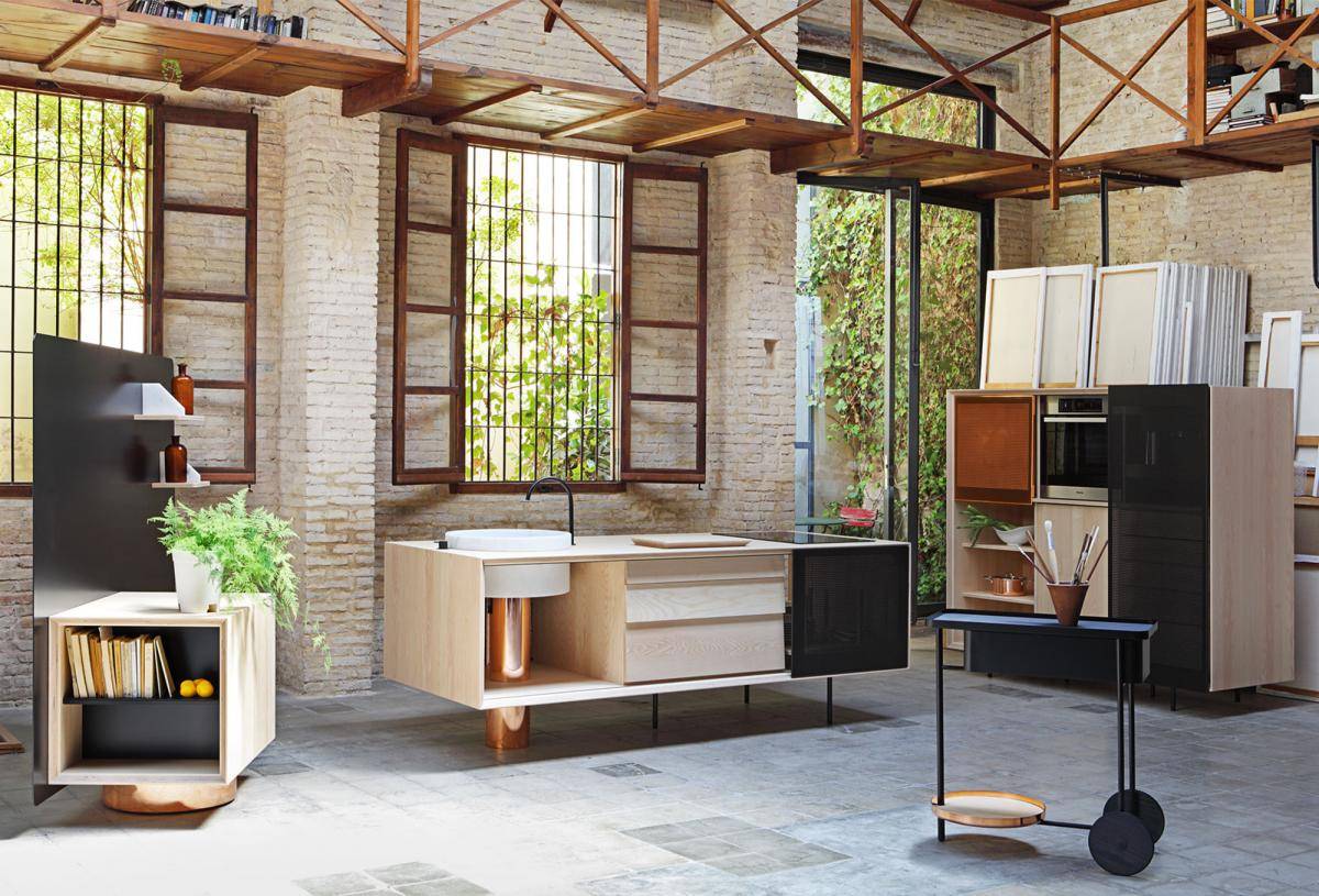 Особенностью свободной планировки является перемещение кухонной мебели на колесиках разделочных столиков, тумбочек и прочих элементов в нужное место.