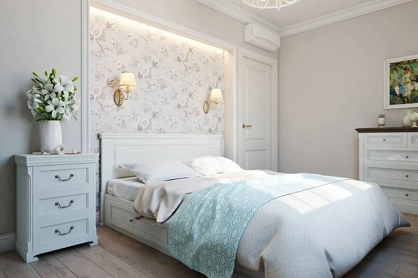Дизайн спальни в светлом стиле предоставляет владельцам широкие возможности в визуальном изменении – расширении, удлинении, увеличении пропорций помещения.