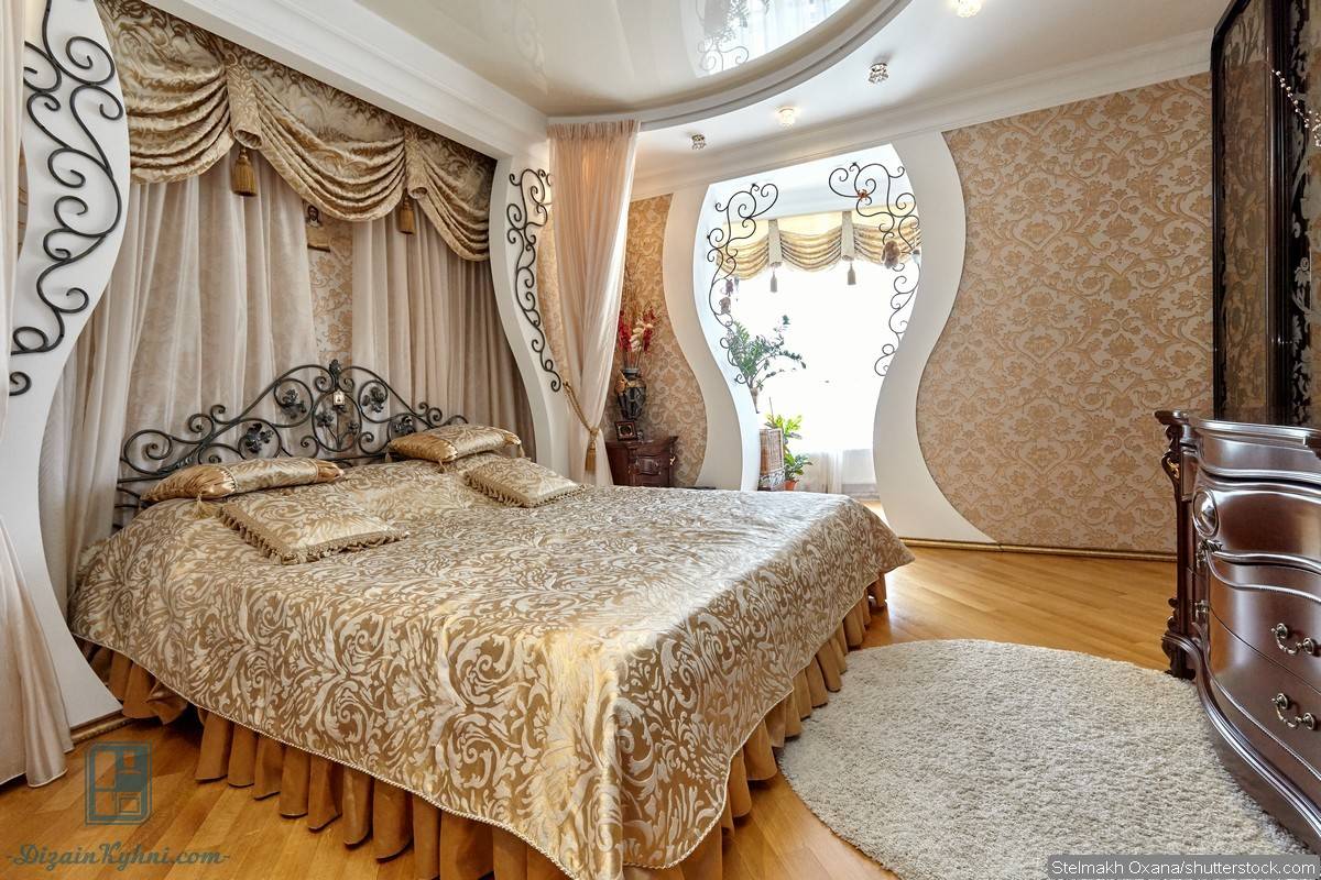 Стиль барокко понравится тем, кто любит пышность и обилие деталей. Основные цвета такого интерьера: белый, светло-желтый, золотистый, розовый. Обязательные составляющие спальни в стиле барокко: