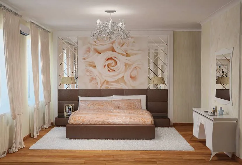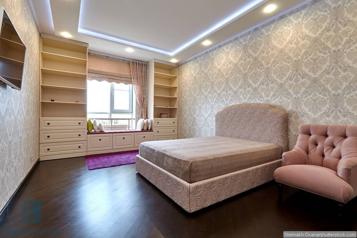 Дизайн спальни зависит от их цветовой гаммы и нанесенного узора. Их часто подбирают в тон к шторам или мебели.