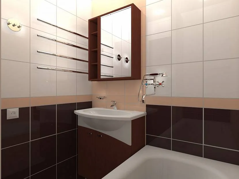 Шоколадный коричневый внизу ванной комнаты, светлый бежевый, молочный – наверхуИсточник decorationinfo.ru