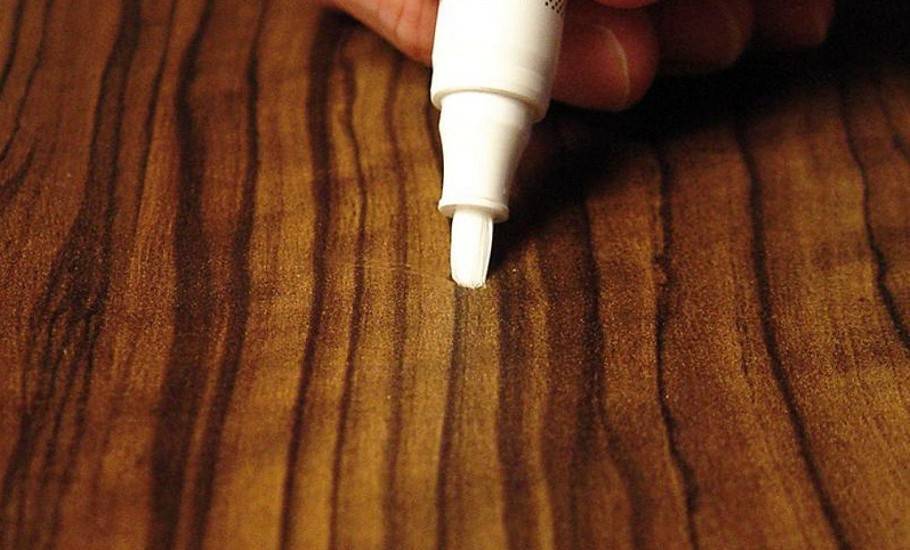 Двери с такой отделкой можно легко вернуть к жизни с помощью специального воскового карандаша. Его сначала нагревают, а потом уже обрабатывают им все трещины и царапины. Самое главное — подобрать тон карандаша под цвет двери, если это сделать правильно, то после полировки обработанного карандашом места цвет не будет выделяться и станет практически незаметным.