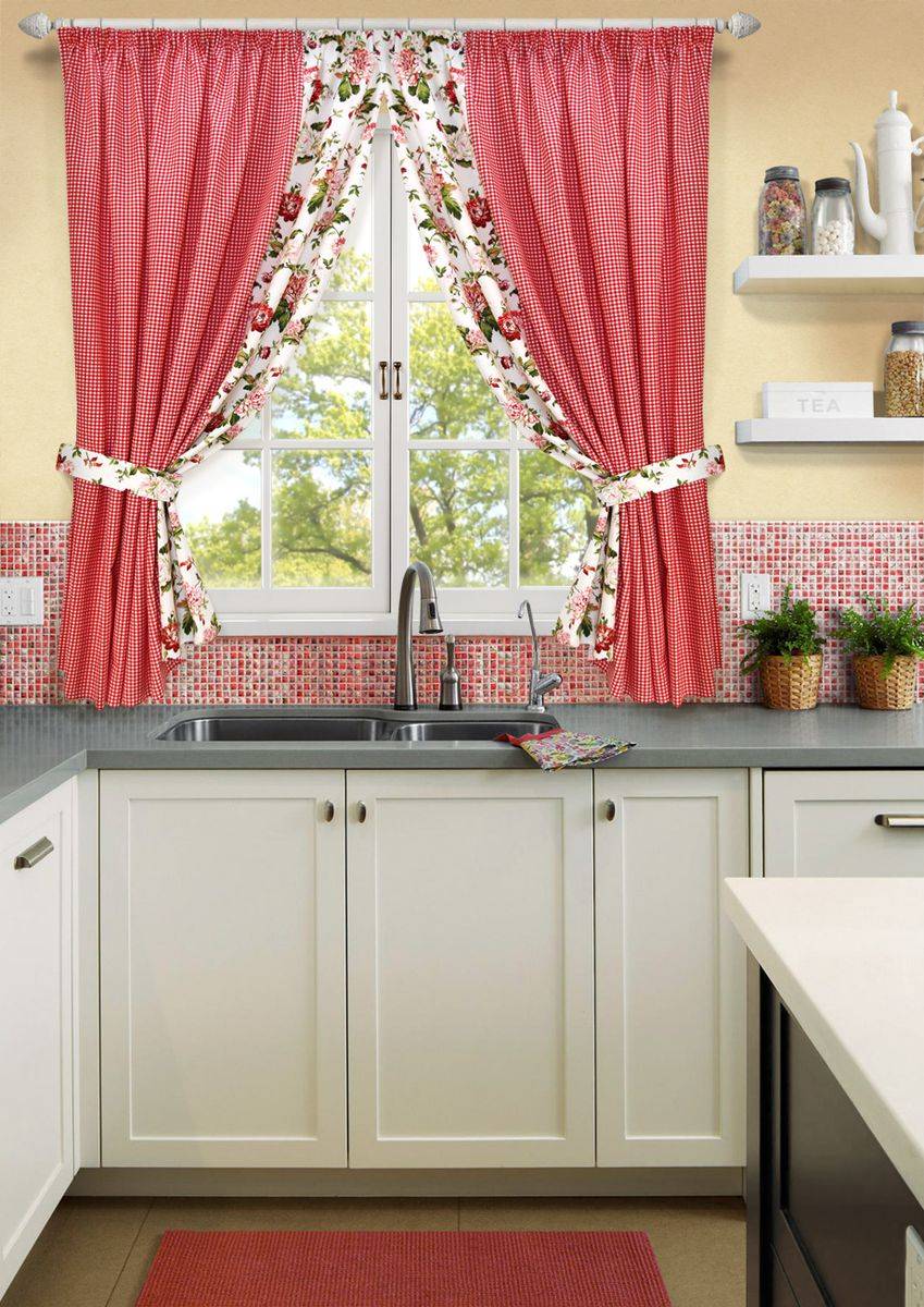 Подбирая шторы для этого помещения, следует иметь в виду, что красный цвет является одним из наиболее насыщенных оттенков, поэтому его избыток в интерьере может вызывать раздражение, агрессию и переутомление. Кроме того, нужно учитывать, какой цвет имеет мебель на кухне. Как правило, оттенок штор во многом зависит от цветового решения, в котором выполнен кухонный гарнитур.