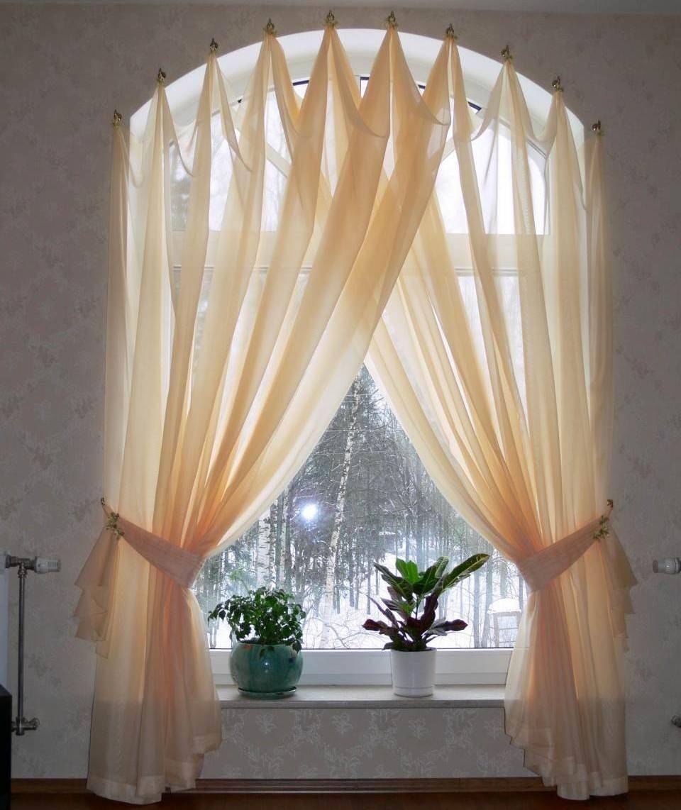 Тюль на крючках: оформление арочного окна