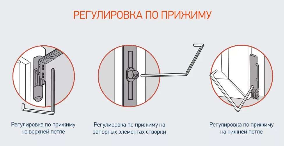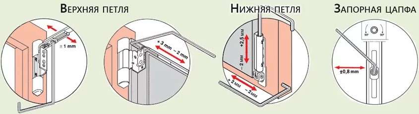 Схематическая инструкция для самостоятельного регулирования положения балконной двери