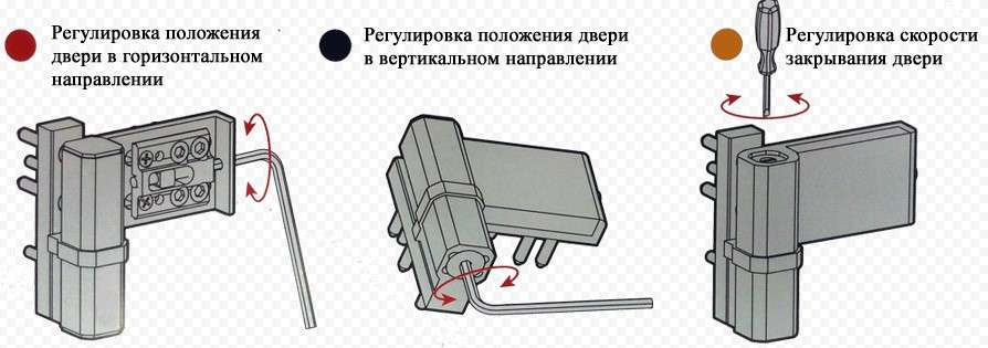 - Корректировать положение двери можно с помощью подкручивания петель.