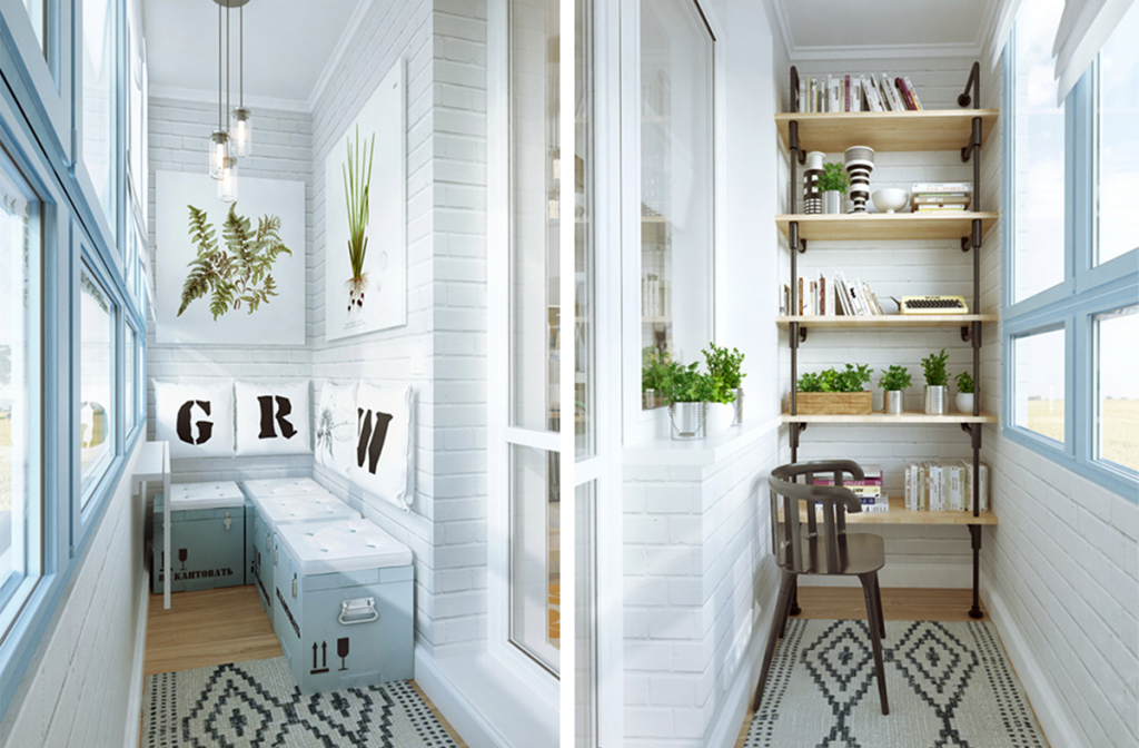 Как и в случае с кабинетом обустройства мастерской на балконе предполагает не только остекление маленького балкона, но и его полное утепление с установкой электрического обогревателя и теплого электропола. Что же касаемо интересной отделки маленького балкона, то для такого помещения подойдет как стиль лофт, так и скандинавский стиль, отличающийся простотой реализации и относительной дешевизной ремонтных работ.
