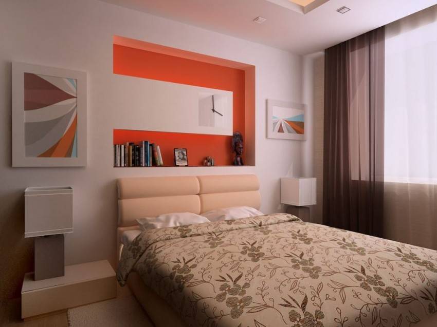 На фото спальня с декоративными нишами, размещенными в перегородке.