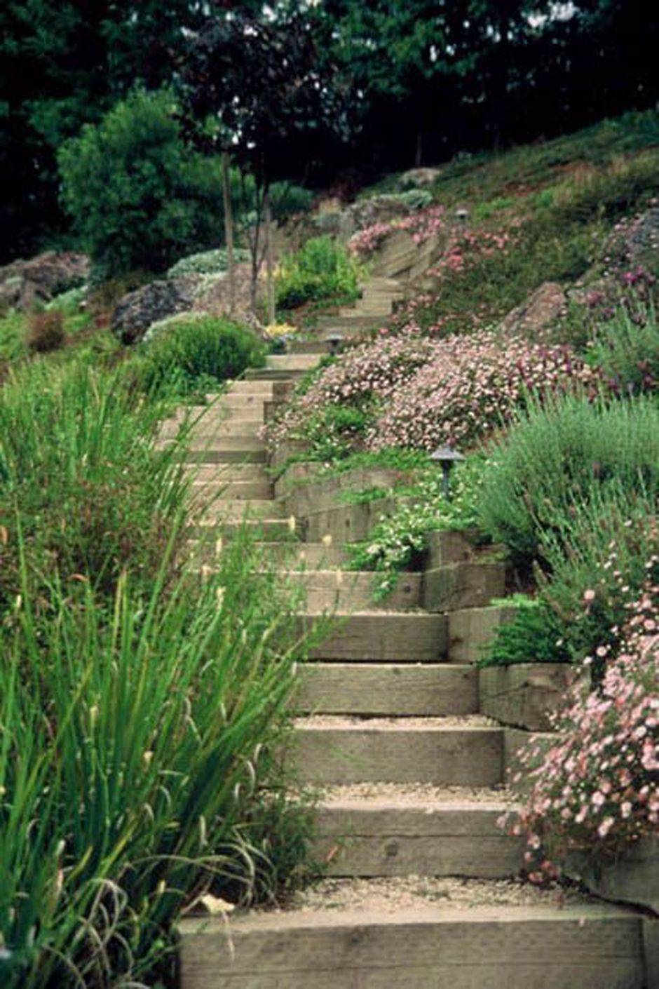 Обустраивая участок со склоном, нельзя забывать об удобных путях передвижения. Если склон очень заметен, без лесенок и ступеней, конечно же, не обойтись
