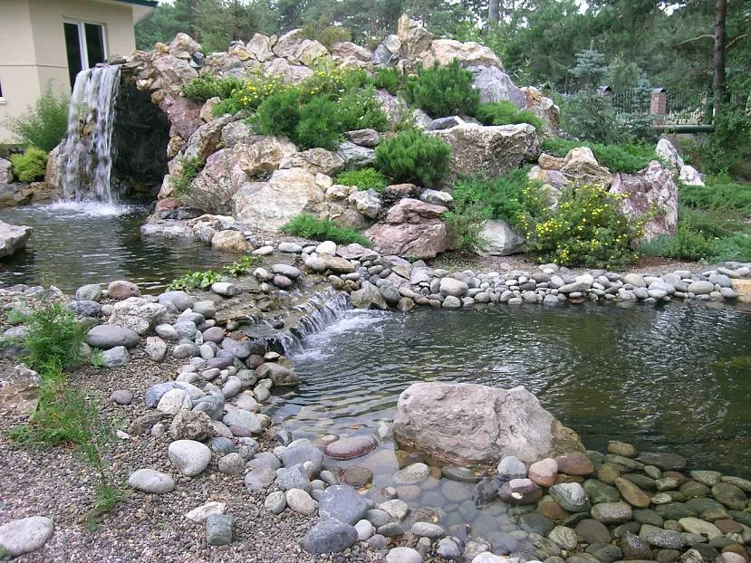 - размещения водопада, ручья, небольшого мостика между выступами. На каменистых местах устраиваются альпинарии или рокарии, дающие впечатления горного ландшафта.