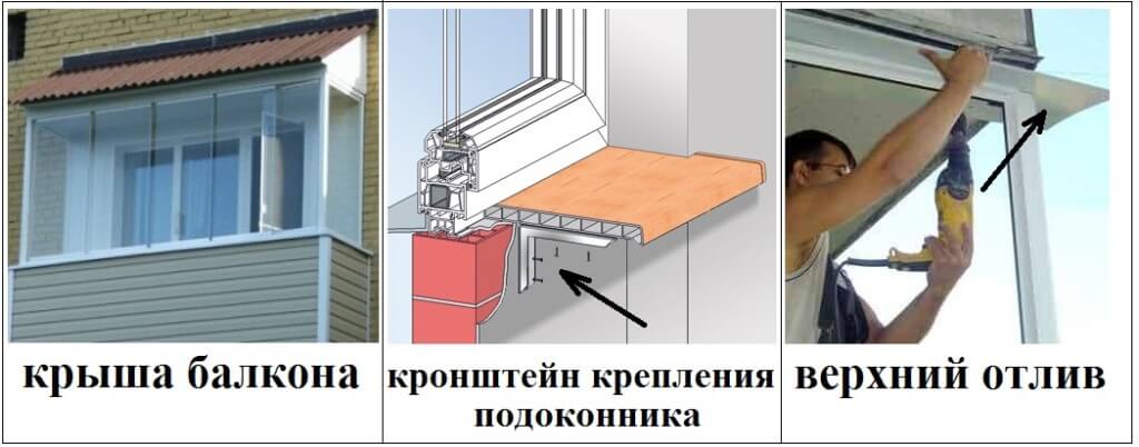 Снаружи установите оцинкованные козырьки для защиты деревянной конструкции от атмосферной влаги и улучшения внешнего вида балкона.