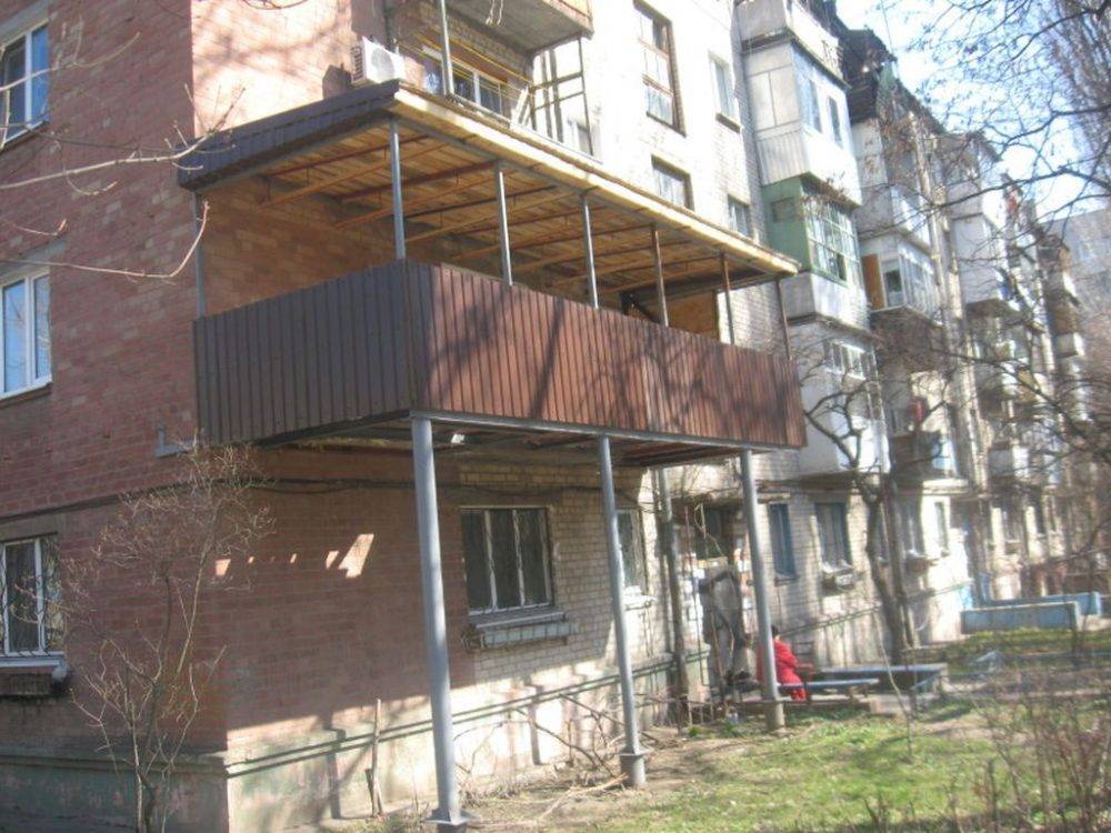 Такой тип балконов используется в квартирах, расположенных на первом или втором этажах, а также в двухэтажных домах. Отличается этот тип наличием свободной площадки под самим балконом, на которой расположены балконные опоры;