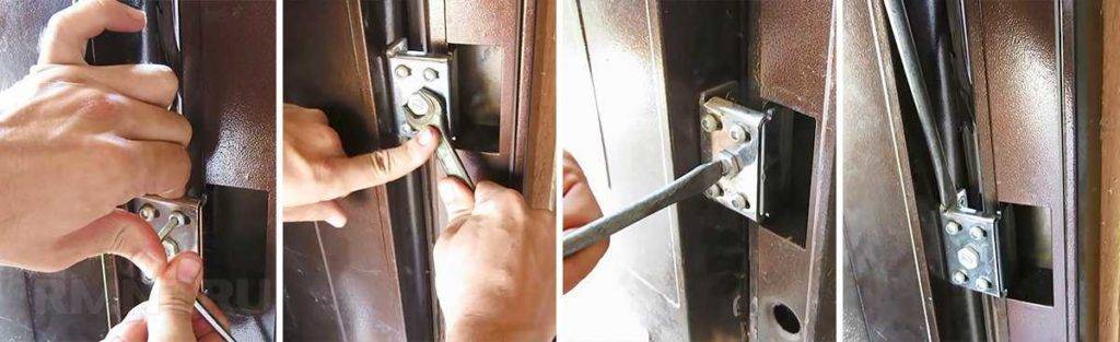 Стоит обратить внимание на петли – от их количества будет зависеть процесс ремонта. Ослабляется закрутка двух расположенных посередине. Проверяется ход