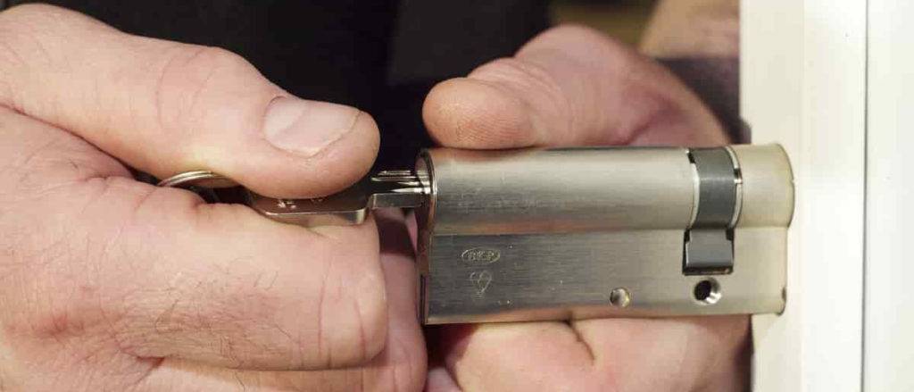 - Затем вставляют рабочий ключ, замок несколько раз открывают и закрывают, проверяя результативность операции. Нельзя применять силу — ключ необходимо поворачивать плавно.